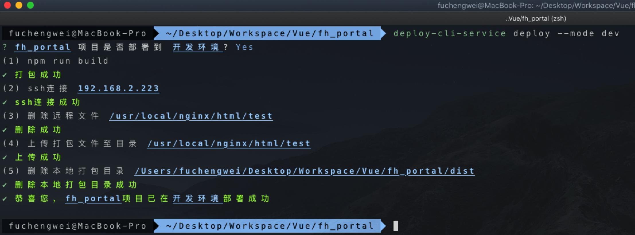 前端一键自动化部署脚手架服务,支持开发、测试、生产多环境配置。配置好后一键即可自动完成部署。